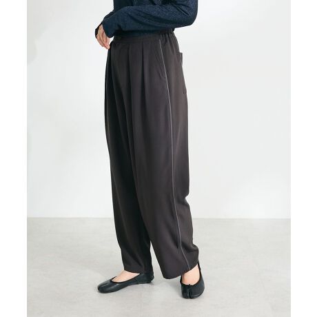 *落ち感のある素材に、タックデザインでたっぷりと幅をとったおしゃれなワイドシルエットパンツ。・昨年も好評だったアイテムに、使い勝手の良いブラックが加わりました。