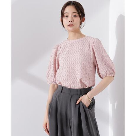 立体感のあるウェーブジャガード素材が特徴の半袖トップス。シンプルながらも素材に特徴があるので、合わせるだけできちんと感を出せる着映えアイテムです。