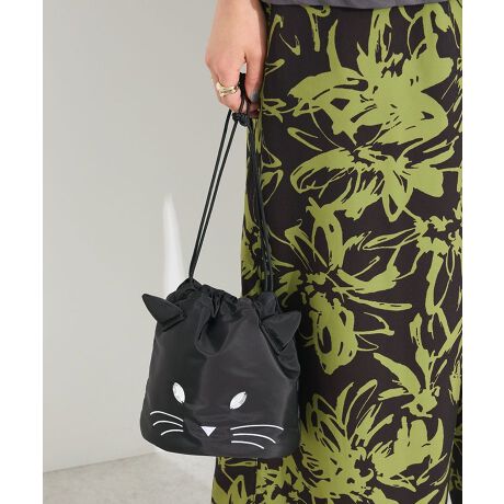 *可愛らしいネコのデザインが特徴のパフネコ巾着ショルダー。ファッションに遊び心を加えるアクセントとして、大人にもビジネススタイルにもカジュアルにもマッチします。