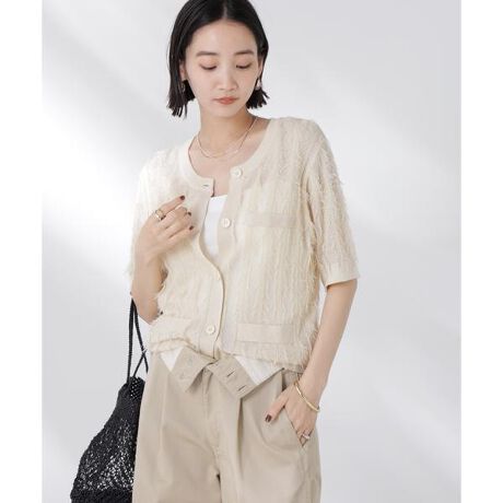 ふさふさとしたフリンジが目を惹くニットカーディガン。釦を閉じてトップスとしても、前を開けてキャミワンピなどの羽織りとしても使える着回しの効くアイテムです。