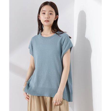 ・肌見せし涼し気な印象を与えるニットプルオーバー