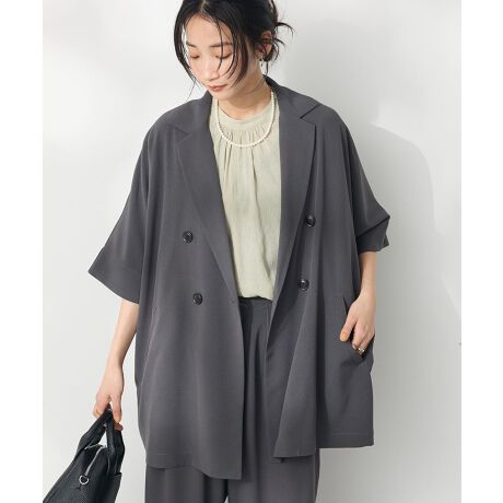 *落ち感のあるとろみ滑らかなテキスタイルで仕立たデザインジャケット。・昨年も好評だったアイテムに、使い勝手の良いブラックが加わりました。