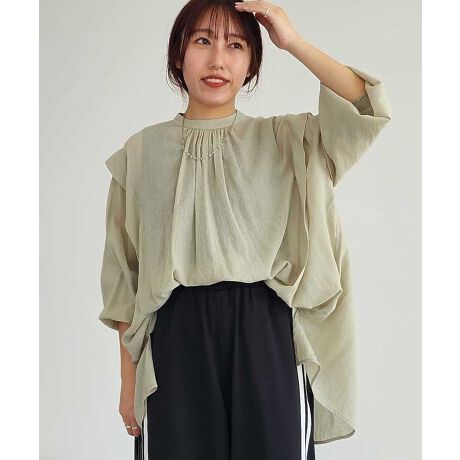 *とろみテクスチャーが優しいニュアンスをプラスするデザインブラウス。・肩にデザインがあることによって女性らしい柔らかな印象になります。