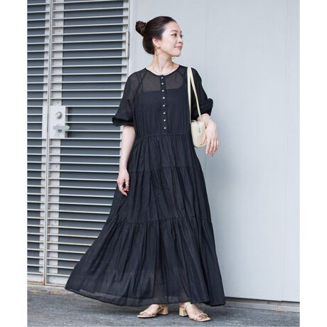 ウォッシャブル / ボイルティアードバルーン袖ワンピース
