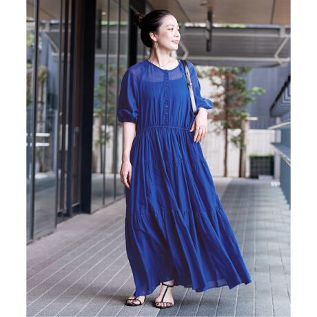 インドコットンボイルをふんだんに使ったティアードワンピース。