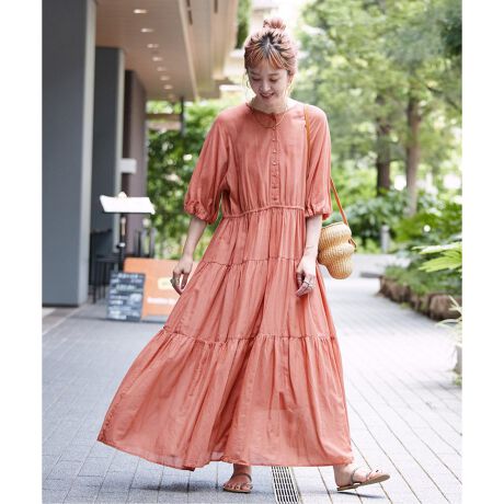 インドコットンボイルをふんだんに使ったティアードワンピース。