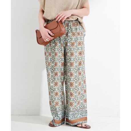 ナチュラルタッチな素材のパネル柄プリントパンツ。