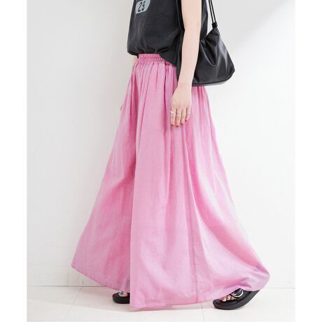 柔らかさを感じられるシャンブレー素材のスカートパンツ。
