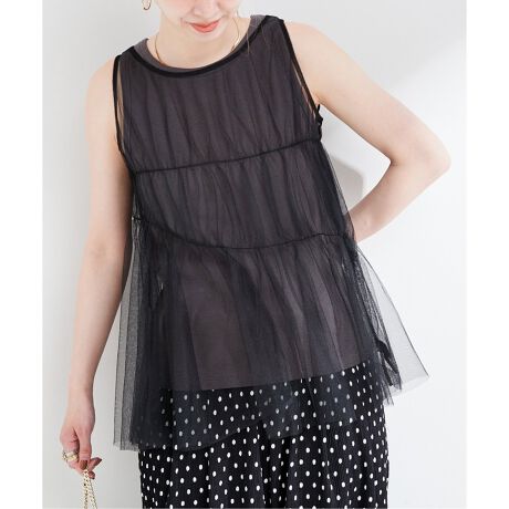マルイウェブチャネル   /   ベーセーストック   /   トップス   /   タンクトップ   /   《2点セット》ウォッシャブル / 手洗い可 / チュールトップス+タンクセット