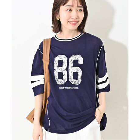 ヴィンテージ感のあるかすれたプリントと、袖やバックに入ったラインがアクセントに。