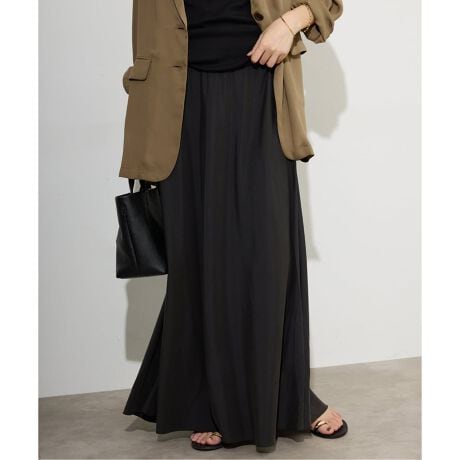 サマーニットやカットソーなど幅広いトップスを格上げしてくれるような万能スカートです。