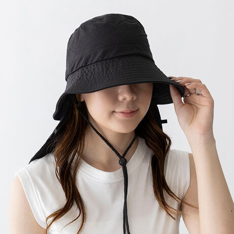 『UV CUT率90%以上&ひんやり接触冷感ネックカバー付きバケットハット』