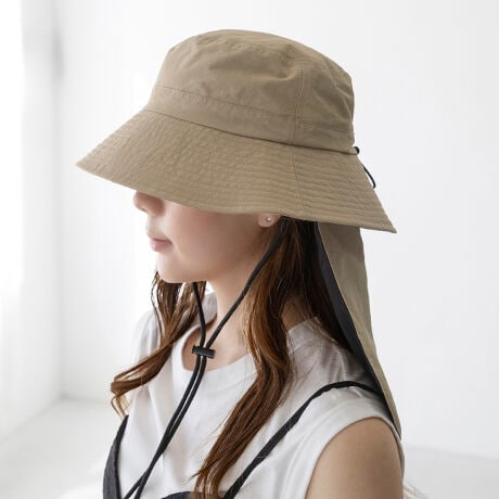 『UV CUT率90%以上&ひんやり接触冷感ネックカバー付きバケットハット』