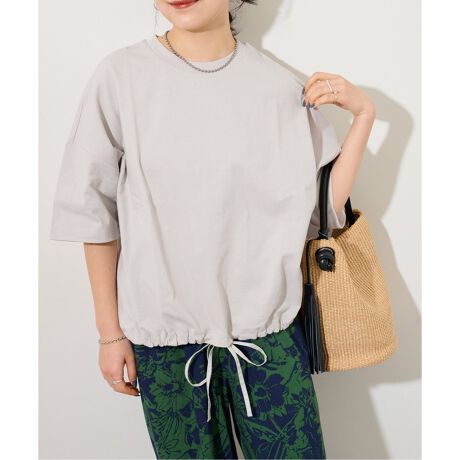 素材感:しっかり目のカットソー素材。さらっとした滑らかな質感ではなく、ドライでカジュアルな印象です。