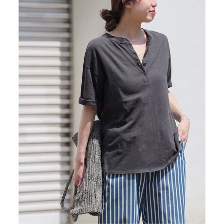 ラフィーコットンを使用したヘンリーネックT。