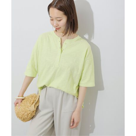 ラフィーコットンを使用したヘンリーネックT。