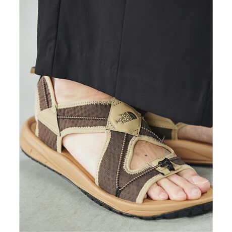 アッパー素材には、通気性を考慮しメッシュアッパーを採用しており、ヒールのドローコードが、フィット感をワンアクションで調整可能。また、左右のサンダルを合わせてから、ヒールのドローコードで束ねてテンションを掛けると、コンパクトにサンダルをまとめることができるギミックを搭載したアウトドアサンダルです。