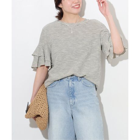 天竺ラッフルショルダーボーダーTEE(品番:25070462975020)