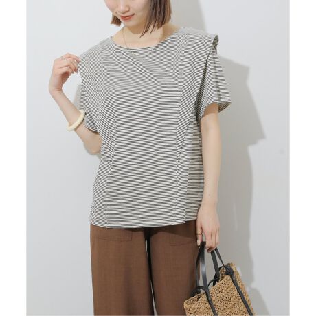 天竺ラッフルショルダーボーダーTEE