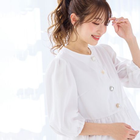 ふんわり広がるペプラムシルエットにややコクーン気味の切替を入れているので広がりすぎず女性らしい可愛らしいフォルムに。