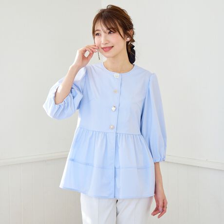 ふんわり広がるペプラムシルエットにややコクーン気味の切替を入れているので広がりすぎず女性らしい可愛らしいフォルムに。