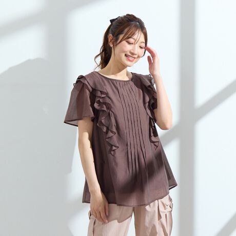 【手洗いOK】ピンタックフリルブラウス