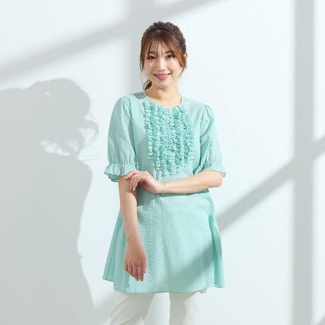 【コットン100/速乾/イージーケア】ミラクルウエーブフリルチュニック