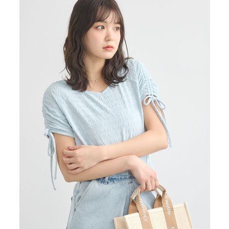 表面感のあるふんわりとした生地で仕立たデザインプルオーバー。デコルテをきれいに魅せてくれるヘルシーなハートネックにベーシックな丈感が着合わせしやすい一枚です。袖のラインにはドロストコードをプラスし、絞りを入れたコンパクトなアレンジも可能に。軽やかな雰囲気でシンプルながらも存在感のあるスタイリングのポイントにも最適なアイテムです。透け感[なし]
