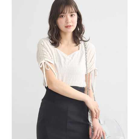 表面感のあるふんわりとした生地で仕立たデザインプルオーバー。デコルテをきれいに魅せてくれるヘルシーなハートネックにベーシックな丈感が着合わせしやすい一枚です。袖のラインにはドロストコードをプラスし、絞りを入れたコンパクトなアレンジも可能に。軽やかな雰囲気でシンプルながらも存在感のあるスタイリングのポイントにも最適なアイテムです。透け感[なし]