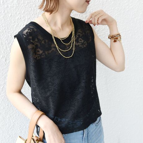 気分で衿の深さを選べる前後2WAYタイプのノースリーブです。