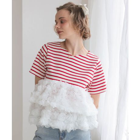 フラワーチュールボーダートップス