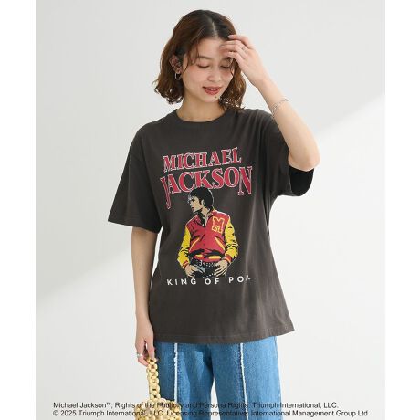 キング・オブ・ポップこと「マイケル・ジャクソン」をモチーフにしたプリントTシャツ。落ち着いた黒地に赤のプリントが映える、インパクト抜群の1枚です。さらりとした表面の肌触り良い生地感と、ゆとりあるオフボディで快適な着心地を実現。いつものスタイルにオンするだけで印象的なコーディネートが仕上がります。透け感[なし]