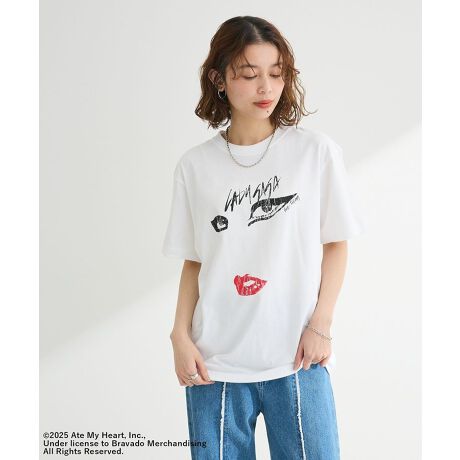 世界的大人気のアーティスト、「レディーガガ」のグラフィックを使用したプリントTシャツ。シックなモノトーン仕上げに赤リップのコントラストがお洒落なデザインです。さらりと肌触り良く、ゆとりあるオフボディで快適な着心地も嬉しいポイント。カジュアルからキレイめまで、幅広いスタイルでお楽しみいただけます。透け感[ややあり]
