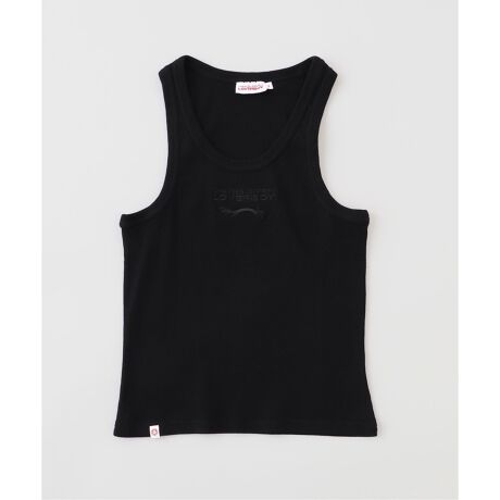 ミニマルな美学とブランドのアイデンティティが融合した、リブ編みのロゴタンクトップ