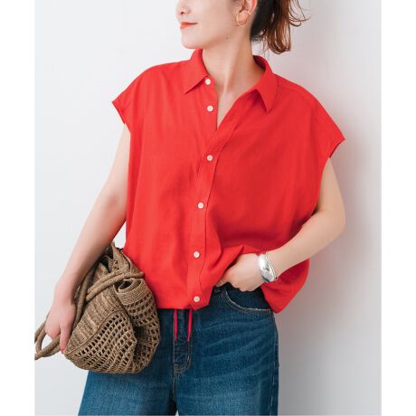 テンセルリネンの素材を活かしたシアー感に綺麗な光沢と、程よい落ち感があり、柔らかく肌離れの良い質感が特徴です。