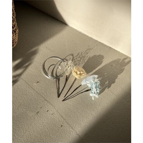ヘアアレンジした髪につけるだけでパッと華やぐドライフラワーの髪飾り。
