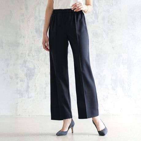 ・センタープレスが施され、キレイ見え。・ゴム仕様のウエストでリラクシーな履き心地。
