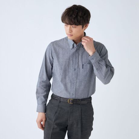【stanley blacker】【長袖】リネンブレンドボタンダウンシャツ ライトネイビー
