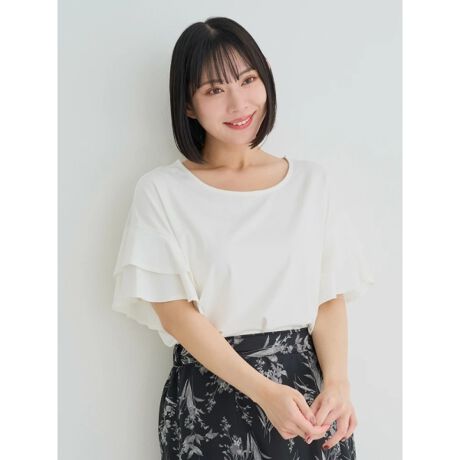 【接触冷感】2段フリルスリーブトップス
