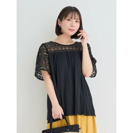 レースで切り替えたデザインがフェミニンな甘さをプラスするトップス