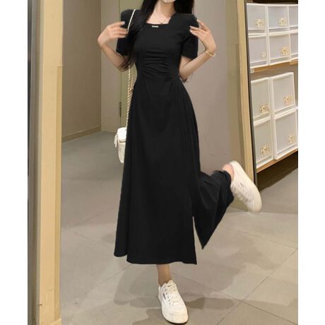 スクエアネックギャザーロングワンピース