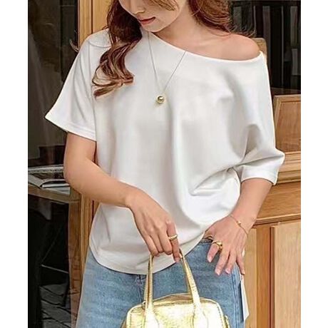 シンプルクルーネック半袖トップス