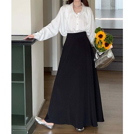 動くたびに美しく揺れるシルエットが魅力のフレアロングスカート。ナチュラルな広がりと落ち感のある素材で、上品な大人スタイルに。