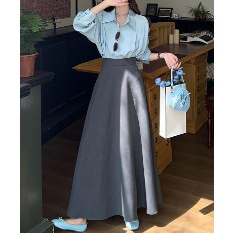 動くたびに美しく揺れるシルエットが魅力のフレアロングスカート。ナチュラルな広がりと落ち感のある素材で、上品な大人スタイルに。