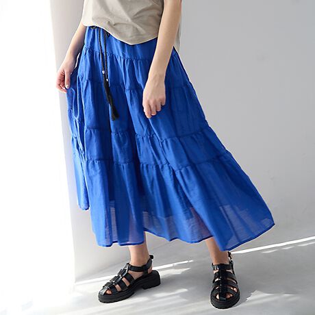 夏らしい清涼感のあるリネン混素材のティアードスカート。