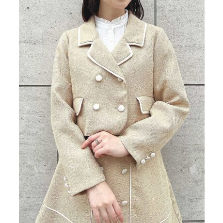 新鮮な明るいカラーのツイード生地に配色パイピングが効いていて、F i.n.t らしいレトロさも感じられるこだわりのデザイン?