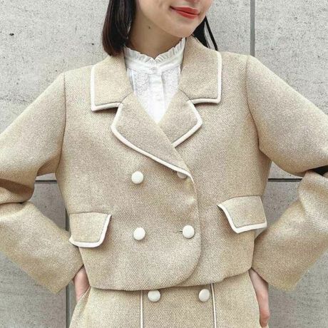 シネマヒロインが着こなす学生風のジャケットをトレンドライクな印象にアップデートいたしました♪