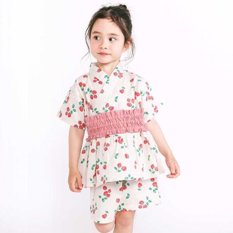 ホワイト系(ヨーヨー)とピンク系(イチゴ)はそれぞれ、お揃いの浴衣や甚平も展開しているのできょうだい・お友達とのおソロコーデもおすすめです。