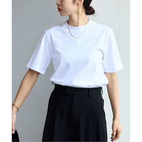 肉厚で透けのないしっかりとした素材感で、首元はフライスでしっかりとつまったデザイン。