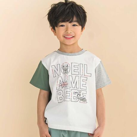 袖や襟の切り替えが目を惹く男の子用半袖Tシャツ。